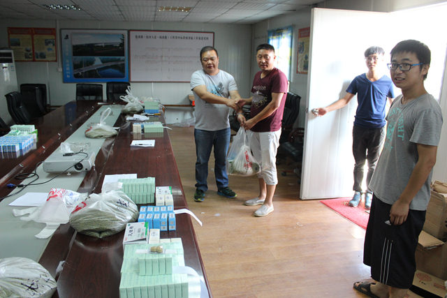 為保障高溫期間廣大員工在勞動生產過程中的身體健康、人身安全,安徽路港郎溪路高架項目部高度重視夏季員工防暑降溫工作,提前統一采購防暑降溫藥品,為項目部職工和一線班組人員共計650余人發放藿香正氣口服液、人丹、十滴水和風油精等防暑降溫藥品。