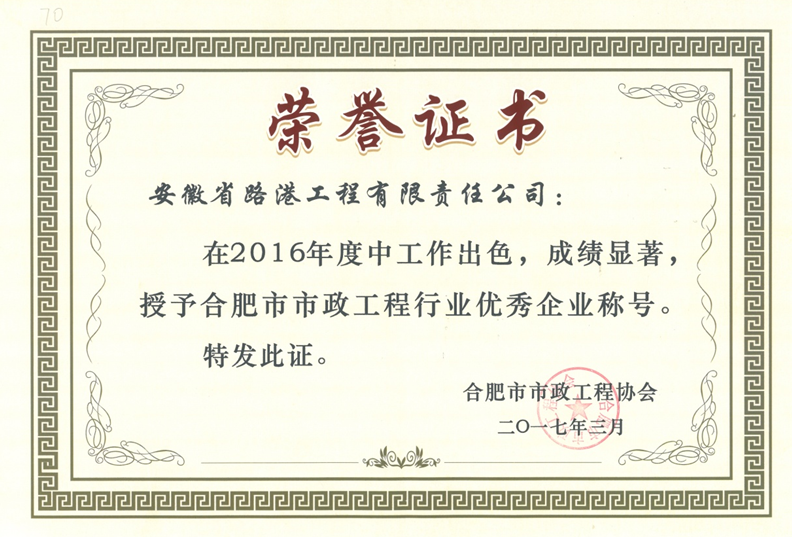 目前由安徽路港公司承建的合肥市市政工程有:郎溪路高架04標、銅陵路高架(北二環-天水路)、湯都路(蒙城北路-湘潭路)、西安路(北京路-河南路)、山西路(花園大道-黃河路)、寧夏路(烏魯木齊路-花園大道)、長豐縣張義公路(高速吳圩道口-朱巷段)等項目,部分項目為合肥市大建設重點項目,對加快合肥市現代城市建設步伐具有重要的戰略意義。