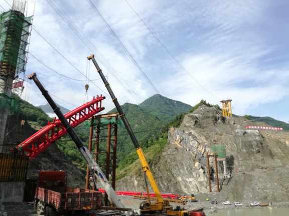 北川樓房坪溜索改橋項目唐家山特大橋首節段吊裝施工順利完成