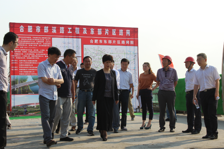 5月21日下午,合肥市市長凌云在副市長寧波、秘書長柴修發等陪同下,赴安徽路港承建的郎溪路04標項目調研。