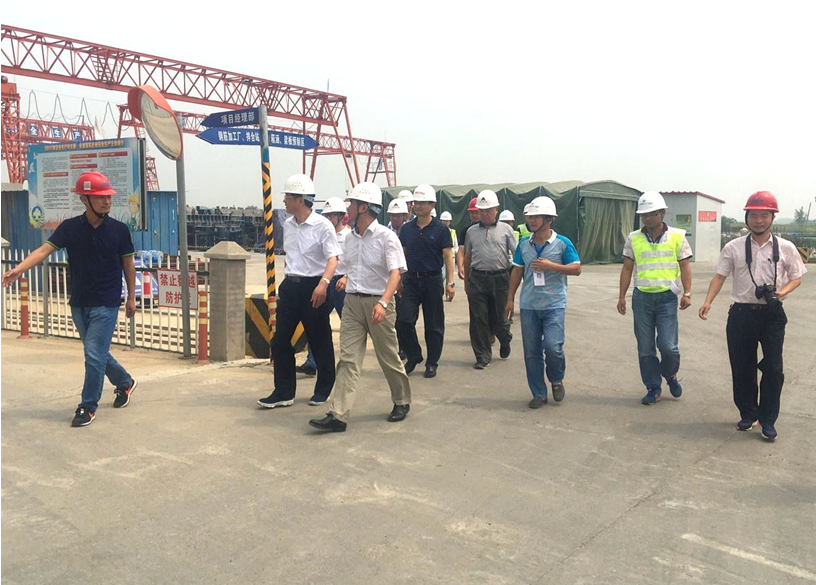 6月21日上午,安徽省交通運輸廳黨組成員、巡視員羅寧一行赴安徽路港合寧預制02標項目部檢查指導工作,省交通運輸廳基建處處長張國棟、省交通質監局局長何光、安徽交控集團副總經理王宏祥、安徽路港公司副總經理錢玉寶陪同。