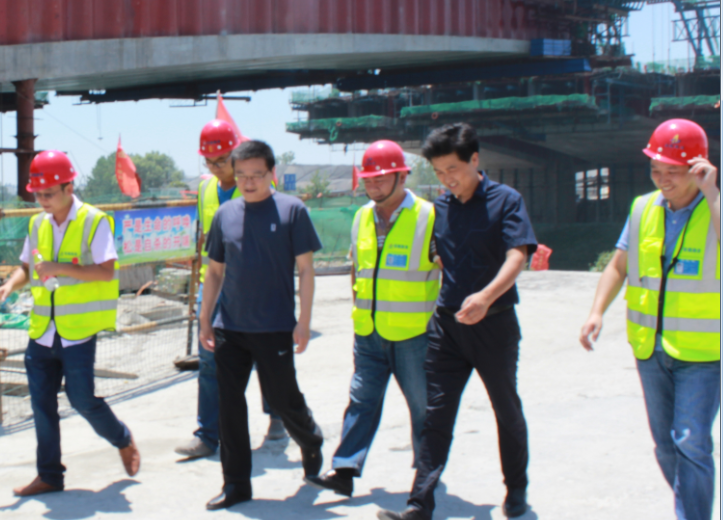 7月21日上午,安徽建工集團黨委委員、副總經理霍向東赴安徽路港承建的郎溪路高架04標項目送清涼,安徽路港公司紀委書記、工會主席干戈和郎溪路高架項目班子成員陪同。