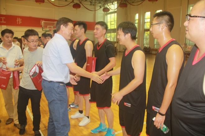 為豐富項目員工的文體娛樂生活,充分發揮員工們的團隊協作精神,增強與合肥市重點局和合肥市電力安裝總公司的溝通交流,7月21號下午,安徽路港合肥市銅陵高架項目部與合肥市重點工程局組成聯合代表隊與合肥市電力安裝公司代表隊在合肥市供電西村活動中心籃球場進行了一場籃球友誼賽,合肥市重點工程局局長張家祥、市供電安裝總公司總經理畢全任應邀出席。