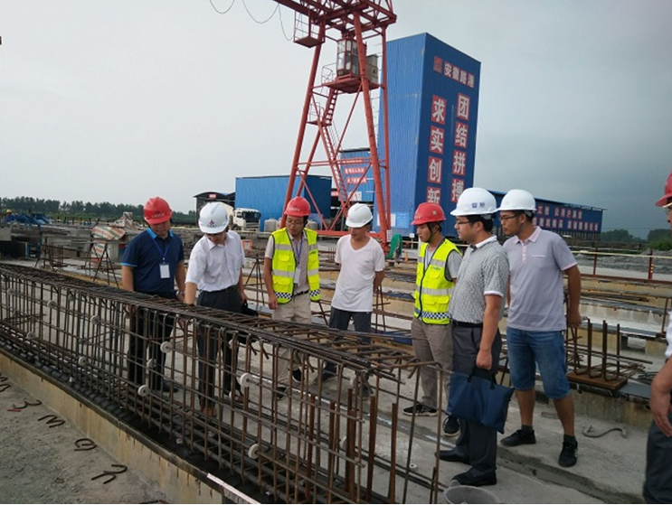 近日,安徽省交通運輸廳施工標準化督察小組在安徽省公路局工會副主席劉強的帶領下,蒞臨安徽路港S332安慶至望江改建工程施工三標項目部檢查指導工作,項目辦工程部部長胡曉平等陪同檢查。