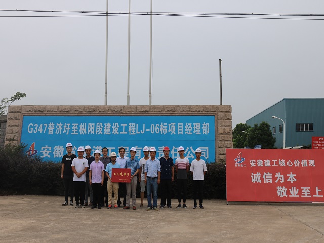 9月5日上午,集團公司工會副主席吳曉伍蒞臨安徽路港G347普縱段建設工程LJ-06標項目部考核驗收“工人先鋒號”創建工作并現場授牌,公司紀委書記、工會主席干戈陪同。