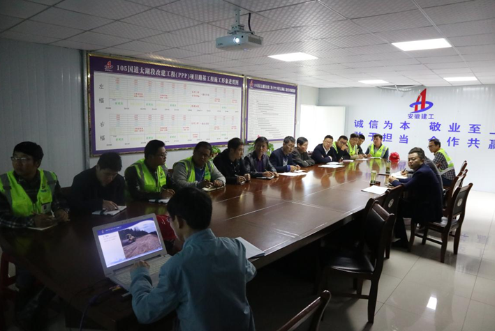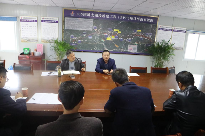 在105國道太湖段改建工程PPP項目部,錢總一行在實地察看施工現場后組織召開工作會議。會上,結合項目部的工作進展匯報和現場實際情況,錢總強調:取土坑要盡快落實到位;模板和人員要滿足現場施工要求;要積極配合項目公司協調地方關系。