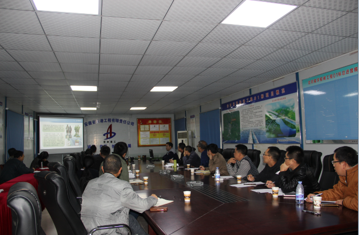 觀摩團一行分別來到現場施工作業區、后場作業加工區進行了實地察看。隨后,在項目部會議室聽取了項目各參建單位的匯報。項目部負責人向與會人員介紹了安徽路港近年來的發展和取得的成績,就南坪船閘項目創建標準化建設工作進行了詳細闡述。