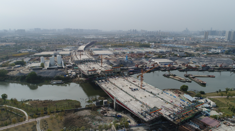 南淝河大橋是郎溪路(包河大道-裕溪路)工程的重要組成部分,全長343m,主跨153m。大橋分三幅布置,左、右幅寬19m,中間幅寬26m,幅間距均為1m,主橋上部結構為三跨波形鋼腹板預應力混凝土連續箱梁。