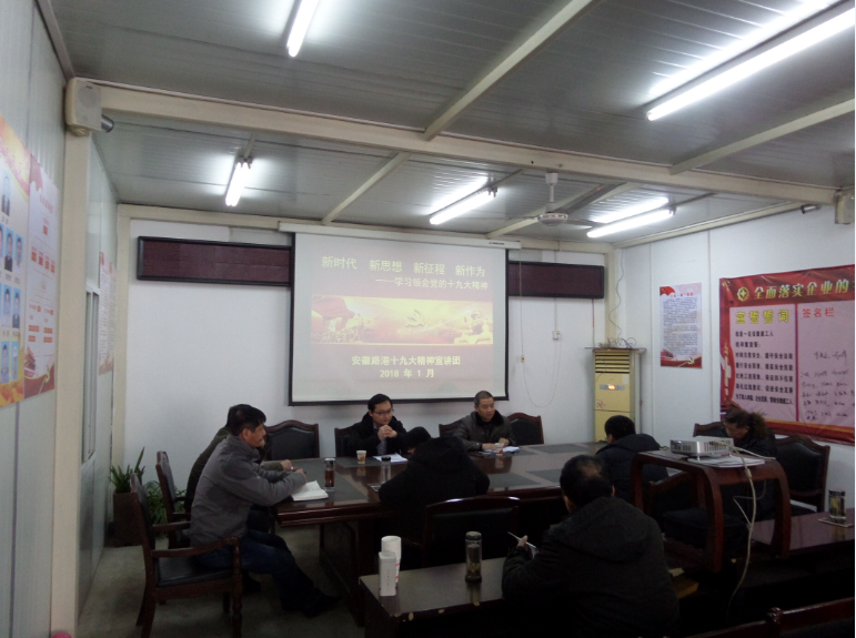 1月10日,安徽路港公司副總經理袁民赴租賃分公司宣講黨的十九大精神,公司黨工部副主任許志興陪同并主持會議,租賃分公司全體職工及路面分公司機關黨員參加會議。