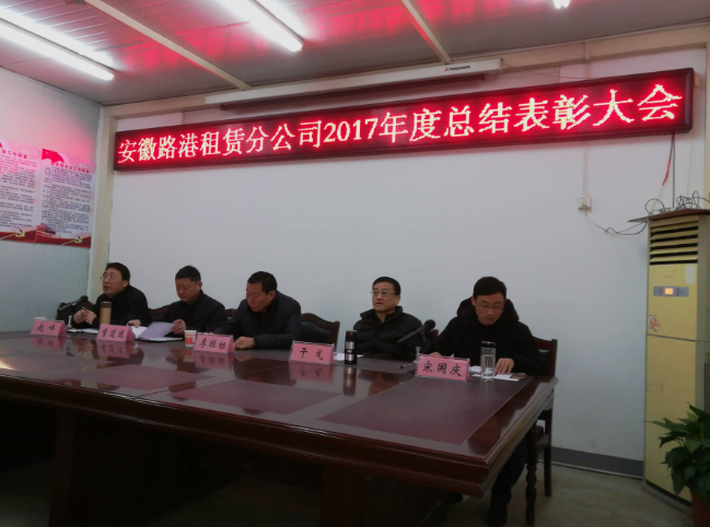 2月6日上午,租賃分公司召開2017年度總結表彰大會。安徽路港公司董事長、總經理李振標,紀委書記、工會主席干戈,工程管理中心副經理、設備部經理李道遠應邀出席,租賃分公司機關全體職工和部分機駕人員參加會議,會議由分公司黨支部書記趙峰主持。