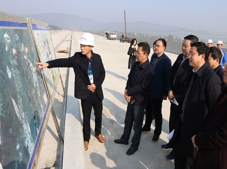 3月23日上午,樅陽縣縣長楊如松、副縣長查曉強在縣交通局局長林洪兵陪同下,蒞臨安徽路港G347項目部檢查指導工作。