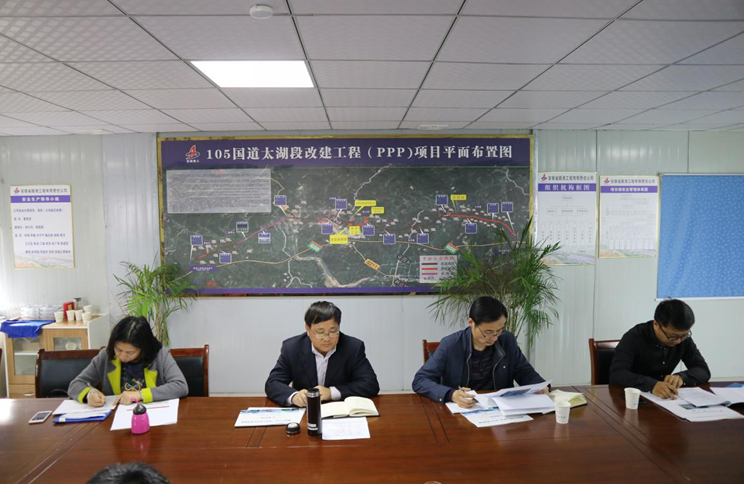 3月26日,安徽建工集團總經理助理、工程管理部主任童宗勝率檢查組赴國道G105太湖段改建工程PPP項目部檢查指導工作,安徽路港公司副總經理錢玉寶、工程管理中心常務副主任郭明奎等陪同。
