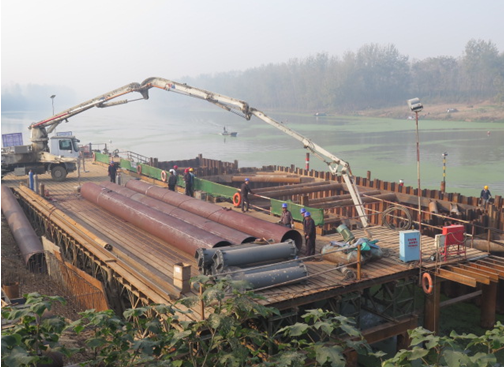 沙潁河QL-03標14#主墩鋼板樁圍堰封底混凝土順利完成澆筑