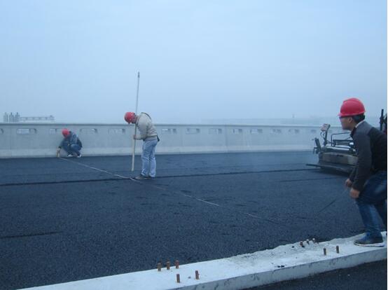 截止晚上20點,裕溪河特大橋北岸引橋0#橋臺至18#橋墩全幅6cm厚下面層14570m2瀝青混凝土鋪裝完畢。此次瀝青攤鋪標志著裕溪河特大橋已進入最后施工階段,為順利完成工期,實現業主通車目標奠定了堅實的基礎。