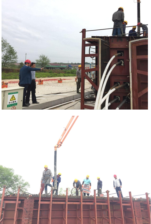 首片T梁系屬南河大橋邊跨中梁0-2#,跨徑40m,高2.5m,寬1.7m,砼總計方量63m³。第一片T梁順利澆筑拉開了橋梁施工的新帷幕,標志著本項目開始進入橋梁上部結構施工階段。
