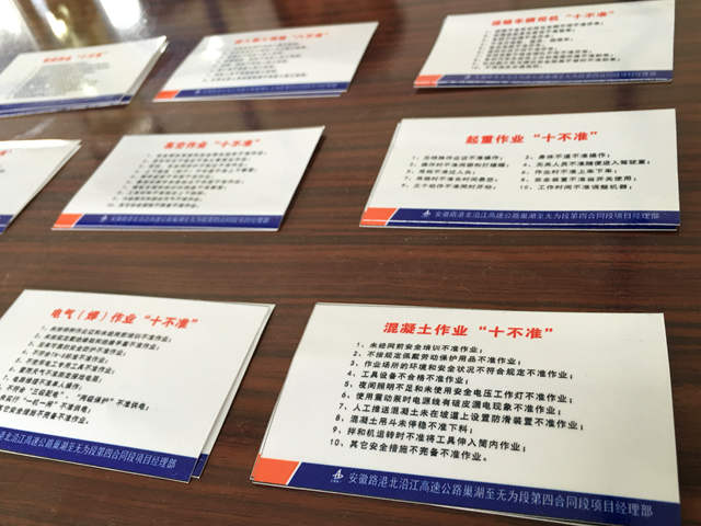 一是組織項目部全體員工進行宣誓簽字活動。二是對各施工班組進行臨時用電教育。項目部指派項目副經理和安全部長對現場一線工人進行教育,講解臨時用電知識,將安全用電落到實處。三是為各班組分發安全書籍、安全卡片。項目部安全部專門印制了安全宣傳手冊,并將安全操作規程中的要點內容印刷到安全卡片上,分發到每一位一線工人的手中。