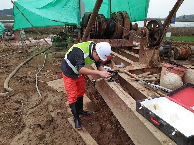 G347普縱段LJ-06標官埠河大橋樁基全部完成