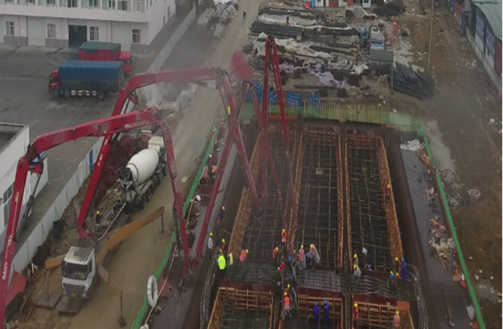 正式澆筑之前,架子工和木工分別對支架和模板進行全面檢查,清除個別頂托脫空現象,加固松動的腹板墊塊,清理底板上的雜物,及時排除各種隱患。本次現澆投入架子工20人、木工60人、鋼筋工45人、混凝土工40人,混凝土泵車2臺、混凝土運輸車20臺、振搗棒12臺,技術人員全程監督指導,對混凝土及施工質量進行全面控制。