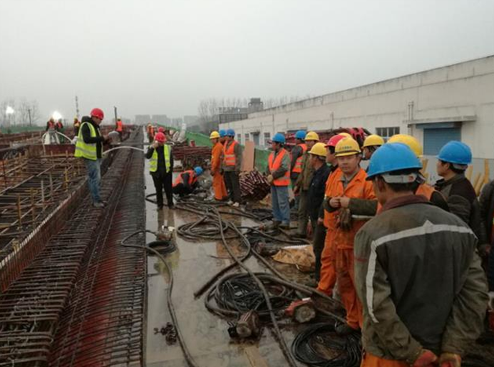 此次現澆內容為主線橋第二十四聯現澆箱梁底腹板,澆筑混凝土1700方,用時20小時。為確?,F澆箱梁首次砼澆筑各工序的順利進行,項目部于21日召開現澆施工現場交底會,明確分工,責任到人,制定了詳細預案,針對現澆施工可能出現的問題制定了相應的解決措施。