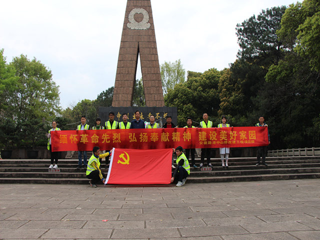 4月4日上午,蕪湖市中山橋項目黨支部組織中山橋項目部、監理組和蕪申運河固堤搶險項目部全體黨員和部分團員青年赴蕪湖市烈士陵園開展“緬懷國家先烈,弘揚奉獻精神,創建美好家園”為主題的掃墓活動。