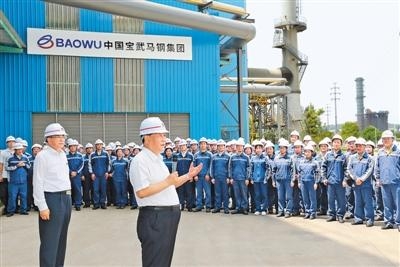 馬鞍山市因鋼而設、因鋼而興。習近平來到中國寶武馬鋼集團,了解企業生產經營情況,察看重點產品展示。隨后,習近平走進優質合金棒材車間,察看加熱爐、初軋機、中軋機等運行情況。車間外,企業勞動模范、工人代表看到總書記來了,熱烈鼓掌。習近平親切地同大家打招呼。他指出,疫情發生以來,馬鋼克服困難,率先復工復產,上半年產量和營收同比實現“雙升”。要抓住深化國有企業改革和推動長三角一體化發展的重大機遇,加強新材料新技術研發,開發生產更多技術含量高、附加值高的新產品,增強市場競爭力。勞動模范是共和國的功臣,要大力弘揚勞模精神。