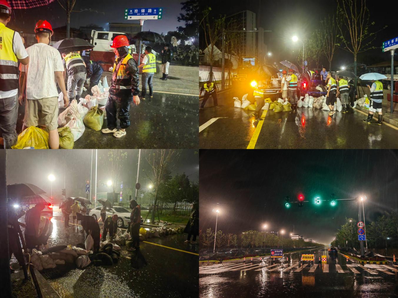 7月1日,夜間9點15分,在接到肥西縣暴雨預警信號后,淮桐03標項目、文忠路項目第一時間趕赴金寨南路02標項目參與搶險救災。所屬項目黨支部黨員沖鋒在前,身披雨衣,在暴雨中裝填沙袋、抽排積水、疏導交通,極力維護現場安全。在搶險過程中,項目嚴格執行24小時應急值班和領導帶班制度,深入項目低洼地帶等隱患點開展巡查排查,對所有易澇點定崗、定人值守,實時監控積水情況,將暴雨帶來的損失降到最低。經過10個小時奮戰,在各方全力協調支持配合下,金寨南路項目積水均已清理完畢,為廣大市民安全出行提供了保障。