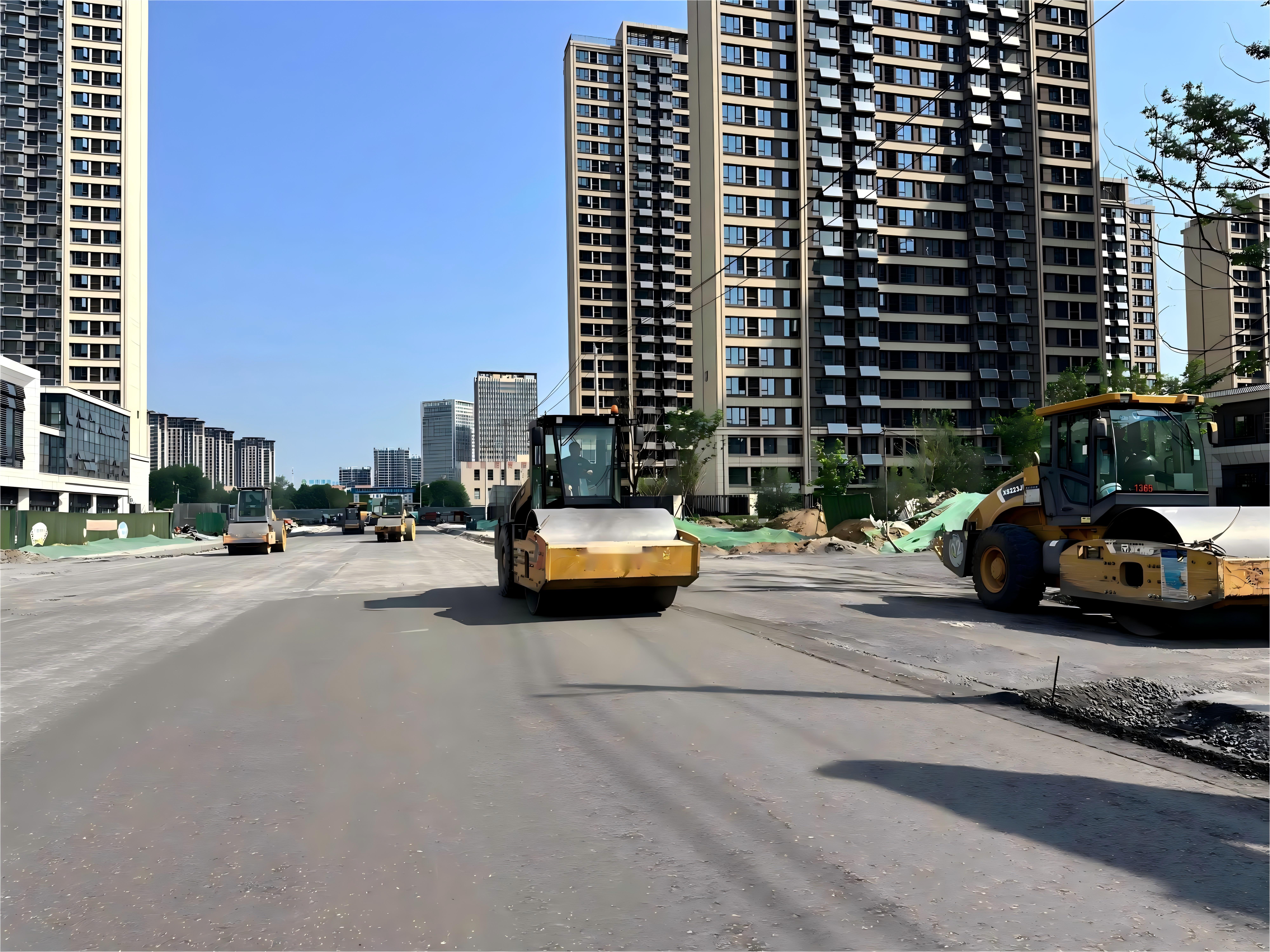 【競速前行 節點突破】建工路港梁河塘路項目基層水穩順利完成攤鋪