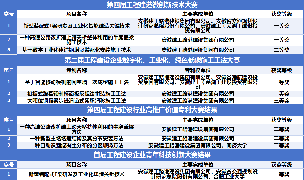 近日,第六屆工程建設行業科技創新大會在武漢召開,會上頒布了第四屆工程建造微創新技術大賽、第二屆工程建設企業數字化、工業化、綠色低碳施工工法大賽、第四屆工程建設行業高推廣價值專利大賽和首屆青年科技創新大賽獲獎成果。建工路港共斬獲一等獎3項,二等獎5項,三等獎2項。
