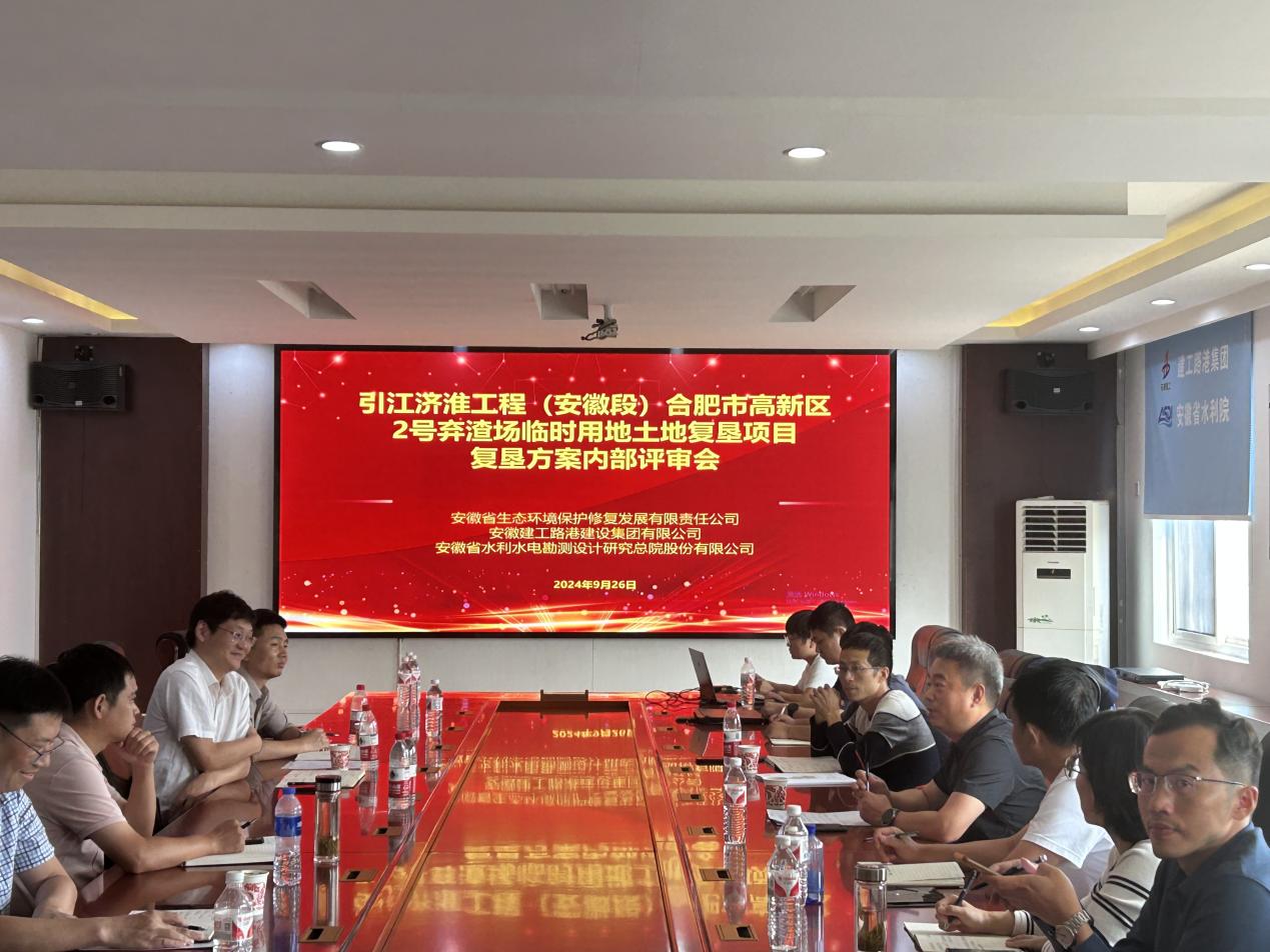 9月26日下午,建工路港引江濟淮工程(安徽段)合肥市高新區2號棄渣場臨時用地土地復墾項目在項目部會議室組織召開了復墾方案內部評審會。公司黨委委員、副總經理、總工程師蘇穎到會指導,省生態修復公司、建工路港水利水電分公司、省水利總院、路港建投等相關負責人參會。