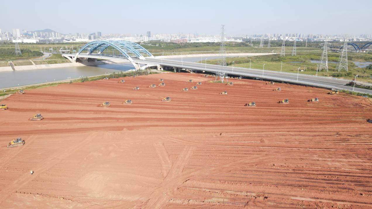 項目位于合肥市高新區引江濟淮蜀山樞紐南側,復墾面積達5669畝,工期緊,任務重。為了交上一張高質量的“速寫”答卷,項目部聚焦“硬骨頭”,錨定關鍵節點,安排專業人員根據現場各區域表土、有效土及紅砂巖實際存儲情況結合原復墾方案實時調整復墾高程,確保各區域內部土方最終平衡,并與設計院密切配合,及時完善設計內容,推進施工圖出圖進度,確保施工圖紙在大批量土方等關鍵節點完成前提供,避免返工風險。過程中,項目嚴格按照濕法作業進行施工,配備高桿霧炮機及移動霧炮機及時降塵,各工區均配備灑水車對現場不間斷灑水降塵,確?,F場滿足環保要求。
