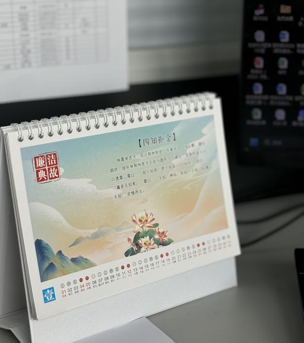 該臺歷每頁精心選編了古代廉潔故事與廉潔名言警句。這些古代廉潔故事猶如一面面明鏡,映照出古人清正廉潔的高尚品德,為職工樹立了榜樣,而其中的廉潔名言警句則如一盞盞明燈,照亮了職工的心靈?!肮鳎?,“清風兩袖朝天去,免得閭閻話短長”。這些簡潔有力的話語蘊含深刻哲理和警示意義,時刻提醒職工堅守廉潔底線,做到心中有戒、行有所止。